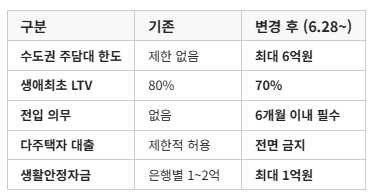 - 대출 한도: 최대 6억원 (기존 무제한 → 6억원)